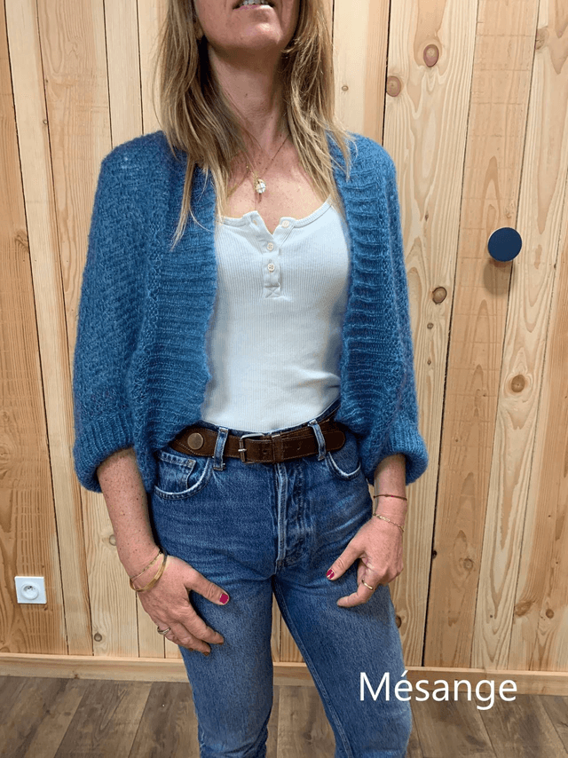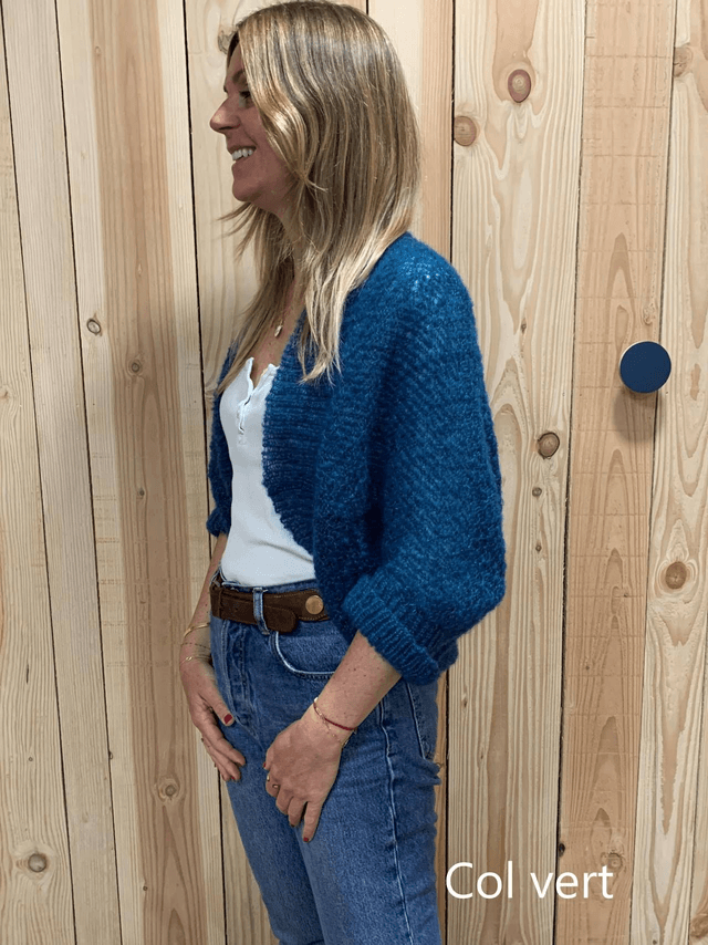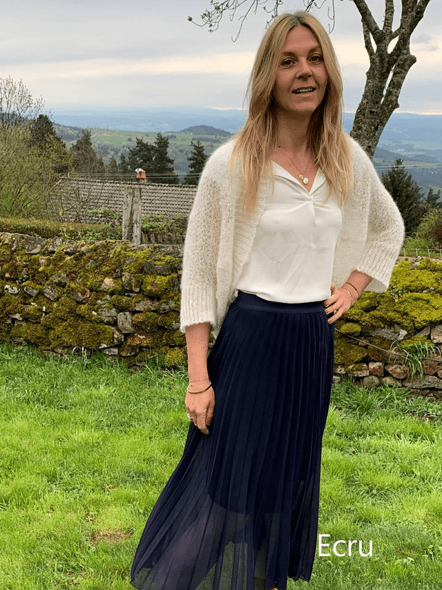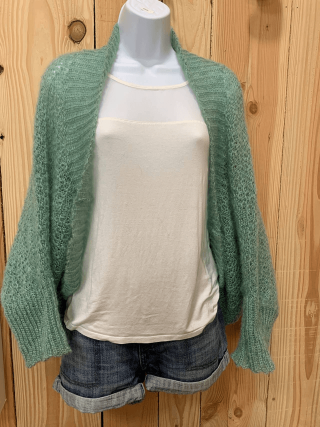 Très joli boléro tricoté avec un motif texturé et vaporeux. Idéal pour les soirées d'été.