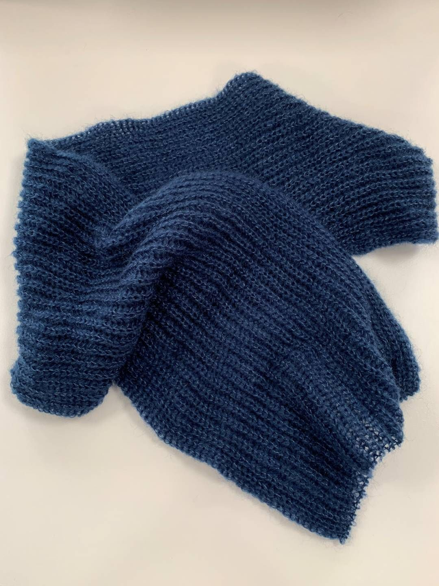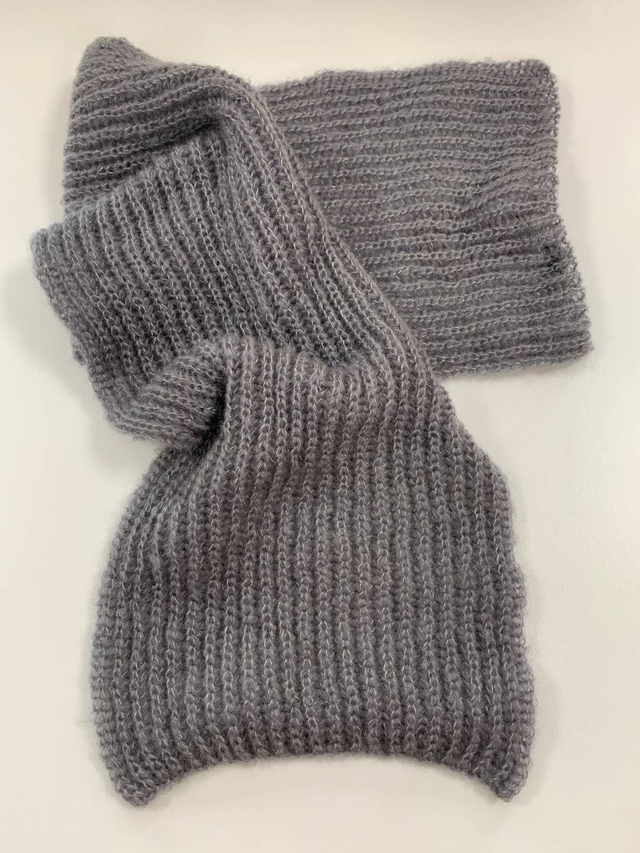 Echarpe classique et intemporelle tricotée en côtes 1/1 pour une bonne tenue.